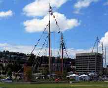 Lake Union is a small freshwater lake just north of the center of Seattle. It is connected to freshwater Lake Washington, and the saltwater Puget Sound, via the Ship Canal and a set of locks. This proximity makes for easy access to the Lakes for a wide variety of vessels, from the National Oceanographic and Atmospheric Administration ships berthed on Lake Washington, to the tall ships that visit the Festival, and to small craft at The Center as well as the float planes that use the Lake.