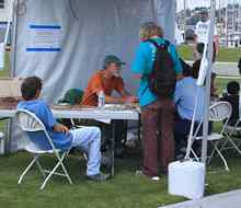 Tall Ship Master Wayne Chimenti, who runs the Community Boatbuilding Shop affilated with the Northwest School of Wooden Boatbuilding in Port Hadlock WA on the Olympic Peninsula, participated in the knot tent. |