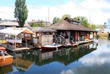 The floating boathouse at The Center For Wooden Boats in Seattle WA. |