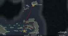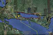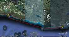 Drummond, Coburn, and Manitoulin Islands. The red line is a rough