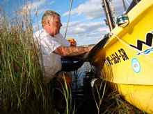 Rick fixing the slow leak in his hull. |