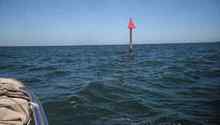 | This marker was discovered several miles offshore in the Gulf of Mexico. Although kind of comforting, since there was nothing else visible on the horizon, I have no idea why it was there; it was not on my chart. |