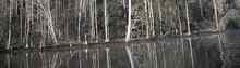 This proved to be far more arduous than I had anticipated: the St. Marys had very little water in it up around St. George, where I put in, and was laced with snags, stumps, floating branches and whole trees fallen across its width. Clearing a path through this debris would take me anywhere from one-half to two hours, so my progress downstream would often be no more than 4 miles a day. I did run into a large half submerged tree that I couldn't pull the boat over, but as luck would have it, was rescued by a fellow (Alton Conner) who showed up on an ATV and pulled the boat over with it. Alton said he had heard at the gas station in St. George I was going to attempt the St. Marys and he figured he better come check on me. Glad he did, or I might still be stuck there. Alton gave me an old but serviceable arbor saw and I used that to cut my way through on numerous occasions. I finally came a cropper on a huge fallen tree four foot across at its base and too big by far to saw through. Once again, I was rescued by two young guys in a canoe who took an axe to the narrower end of the tree and its branches and sprung me free. These two guys, Joe Nicks and Jonathan Henderson, and Alton Conner were the only human beings I saw my first four days on the St. Marys. Very few people live in the woods along the river, but those that do are both resourceful and generous.