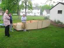 Construction began by building the various frames and bulkheads. This work could be done in the warmth of my basement over the course of our long winter here in Wisconsin. The 2x4s were ripped into framing sticks, and plywood attached with a combination of nails and Titebond III. The plans were easy to follow. Ironically, the 2 projects I built as “warm-ups” (a Glen-L sea kayak and a Bateau NC16 pirogue) ended up being more difficult overall than the AF4.