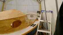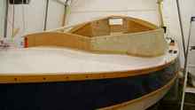 People tended to put a foot on that coaming edge so I figured I would beef it up a bit. The wood was cut, fit, trimmed, fitted again and given a couple of coats of epoxy.
