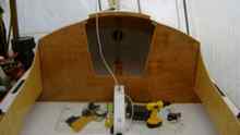 The aft wall was dry screwed in place and enough of the forward deck was cut to allow the front wall to be dry screwed in place.