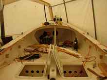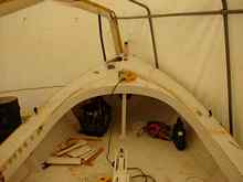 Once that was in place I installed the 2 roof panels, though I had to enlarge the hole in the hatch area so I could climb in and out as I worked on it.