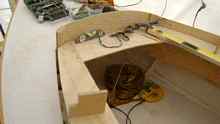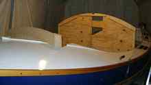 The cabin walls hanging out the back side were trimmed flush and a template was made for a new coaming that would run from cabin back to the transom, this time however I went with a substantially stronger piece of wood and I used ½” plywood.