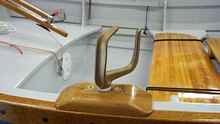It was very difficult to shape and fit the knees (ours is white oak) since it matches so many other surfaces. When we glued in the front seat there was enough bow that we had to brace across.