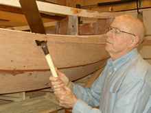 This picture is how I cut-off walnut dowels that were used to plug the screw holes of the gunnels.