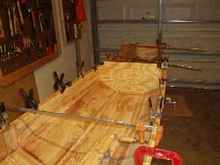 thickened epoxy and covered with fiberglass tape soaked in epoxy,