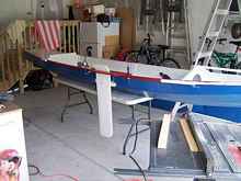 main hull and amas. Leeboard, rudder and other sail rig parts