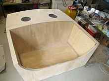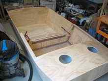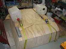This is the completed Forward Module, with decking. The 2 holes are access ports to the interior, and will have watertight hatches applied. The foam occupies about half the visible volume. |