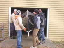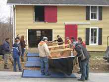 I wasn't sure how much the hull weighed at this point and got 14 people to help with the flipping. The hull lifted easily (16,17,18), came out the door, was rolled over, and put back in a few minutes.