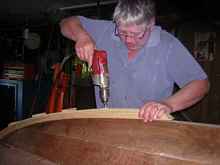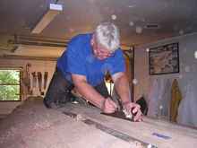 Work it along out to the width of the keel plank, and make sure it stays level as you go.