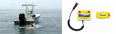 Operating via transmitter that sends radio waves to a receiver connected to a boat’s engine, Autotether shuts off the engine if the boat operator falls into the water. It also sets off an alarm in the event that passengers (or pets) wearing the Autotether sensors on the boat fall into the water. The passenger sensors can also shut off the boat’s engine when the red alert button is pushed if you have a runaway boat.