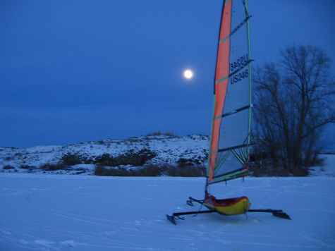 atop 4 inches of smooth, hard ice. Wind out of the NE, 8 mph,