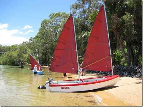 I thought that some of your readers may be interested in the launch of my Core Sound 15 "REDNECK" in Moreton Bay, Queensland, Australia. The boat was built over about 6 months during 2010 and launched just prior to Xmas. Duckworks supplied quite a few of the fittings for the boat. It is built mostly from 6mm and 9mm marine ply. All solid timber is hoop pine. Masts are from 6061 T6 alloy with s/steel sail track attached. The boat is very easy to sail with the two small sails giving a total sail area of around 104 sq ft. and can be trimmed to self steer.