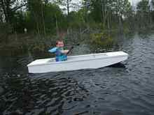 I built this three panel canoe which is essentially Michael Storer's Quick Canoe reduced for a fifty pound, ten year old. We launched it after thanksgiving. She did the decorating.