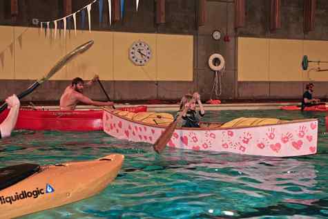 Pool session in Asheville, NC. Eli plans make a saddle, since the boat has no seat.