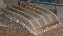 The jig is the pattern and mold for both sides, it holds chines in place at the proper curve, a bead of urethane and staple the plywood every six inches with stainless steel staples and the rails are laminated to shape in the mold.