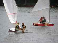 I've just put a youtube video up on my website and on the blog. It shows my oldest two boys (Geoffrey and David) sailing in the very oldLazy E that Dave bought a while back. It shows how much fun you can have with an old plywood boat.