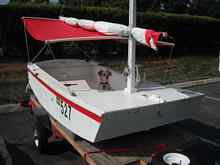 This chap is undoubtedly very happy about his cat - it looks good on this reach. Jib is optimal for that, but he will have a hard time getting upwind with the jib set so wide. Heaps of fun for sure ...