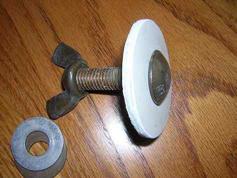 I drilled three small holes in the fiberglass disk, and attached it to my rudderstock with small screws. Who knows... I might even apply a dab of epoxy someday!
