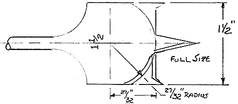 The only tricky part of making these swiveled supports is forming the depressions. A cutter can be quite easily made from a 1 1/2" spade bit (about $8). Cover each side of the cutter with masking tape so you can make pencil marks on it. Locate a center-point 17/32" back from the approximate base of the point. From this new center, using a radius of 27/32", draw the semicircular profile of the new cutter blade. Draw the curve on the other side as well. You'll need these for grinding the cutter to shape.