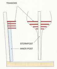 The sternpost is made up of three parts - the sternpost, the false post and the inner post.