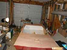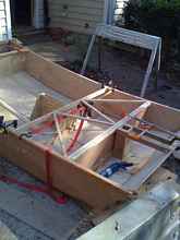 Hull #336, Whack Whack. The picture shows the 2 x 2 framing and the solid plank decking. It was a heavy boat. |
