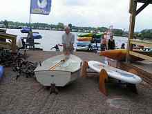 My impression was that the boat was very responsive and easy to row, with one person on board, sitting on the dagger board case it felt very light and sat high in the water. With two people on board it was noticeably heavier to row and sat stern down. To balance it I needed to sit about 18" further forward which made rowing difficult even with long arms, it definitely needed another set of rowlocks installing as per the designers instructions.