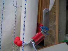 - The lower sheet pulley scrapes on the rope traveller and could do with changing for one with a second sheave at 90 degrees to allow a smooth travel.