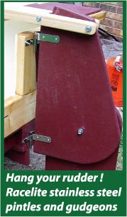 After my initial article "Dinghy on a budget - Part 1" I was eager to complete the sail and rigging to get the boat on the water for a test, my wife suggested (or I should say insisted) that we take her for a row "as the sails may take till next year to complete". As it transpired this was a very good idea as it also gave us chance to reconnoitre the local water park. To help get the boat to the water I built a two wheeled shoe that can be hooked over a notch in the skeg and fastened on to the lower rudder pintle, this makes the boat easy to move, even through loose gravel.