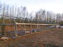 Polytunnel, again another enticing option, and one which I actively pursued for a while. The tunnels available don’t have the height I need without extra side walls and work out quite expensive new for the size I need. Second-hand may have been an option. Where I live in the Vale of Evesham is quite a big fruit growing and agricultural area, and a number of businesses have gone out of business in the last few years. I had my eye on one such enterprise which was on my daily commute to work, it consisted of about 20 very large polytunnels with old covering broken and decayed, it had been like that for several years. Just as I was going to ask who the owner was and would it be possible to buy half of one of the tunnels the site was redeveloped and new covering put on the hoops.