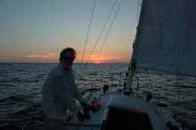 I was still at the helm as the sun set. I didn't think to take a photo even though it was truly beautiful sunset. I was still consoling myself. At 9:30 I turned the helm over to Gene and went below to get some sleep. My watch started at 2:00 AM (0200 hours).