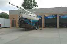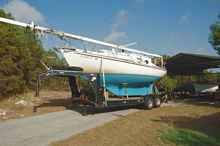 Watching Valora sail through the air, something sail boats aren't suppose to do, was my biggest source of anxiety and I was very happy to see her resting on the trailer. I was also delighted to see that she actually fit on the trailer. We thought she would but that was something we weren't really going to know until we tried.