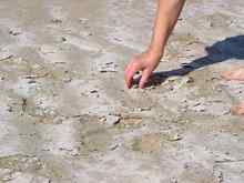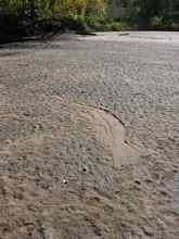 Freshwater bivalves tend to have rather rubbery meat, so this one was "rescued" to the ankle-deep water.
