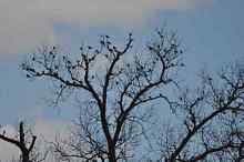 Looking up we have a big flock of grackles hanging out in a tree. This is hardly exotic, but boy are they noisy!