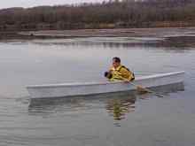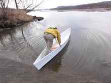 I put in at Arena on the Lower Wisconsin River for a quick test. My brother Jamie was kind enough to assist and take some photos. I'm a relative canoe novice, so here I am gingerly finding my way forward. This pirogue seems about as stable as the few canoes I've been in. (Meaning not very.)