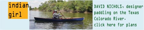 Potential refinements. I may add a couple more .75 x .75" skids on the bottom halfway between the keel and the chine for a little more stiffness. Another enhancement might be some crosswise 1x2 pieces glued and screwed to the inside of the bottom to stiffen the plywood where you side and keep your butt out of the cold water that finds its way in. I think you will definitely want a backrest thwart at any point where you are likely to need to rest your back. Perhaps one more thwart near the middle can serve as backrest for a solo paddler and the forward paddler, if the boat reverses direction for these two modes. However a moveable seat with a back might be the better approach, though this hull form does seem to be rather tolerant of bad trim.