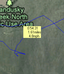 It make take a minute or so to load, depending on how long your track was. I should mention here that I completely clear the GPS unit’s memory between uses to minimize the editing of a track before proceeding. We then save the track as a .gpx file.