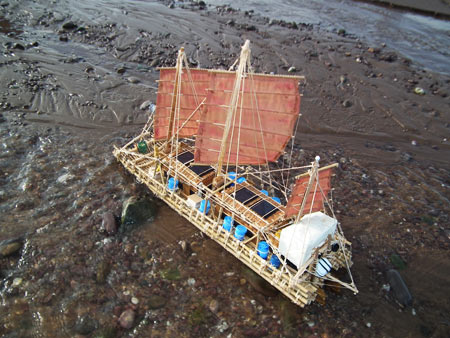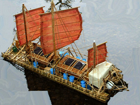 Tim Severin’s book The China Voyage , I understand from Clive Halliwell who lives in Lancashire, England, inspired the build of his model of the impressive ocean going raft Hsu Fu. It wasalso the name of the fullsize vessel, so named after an ancient Chinese mariner ordered by the first Emperor of China to search the Pacific islands for an elixir of immortality. People in China still die so I guess the sought elixir was never found.