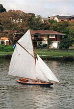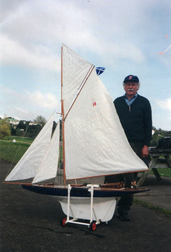 Tom Simpson of Auckland, New Zealand, a member of the Ancient Mariners is know for his fondness for and building of pretty boats. A meticulously patient and painstaking builder who delights in solving problems associated with his projects, in late 2000 his 81” long cutter Thistle was launched.