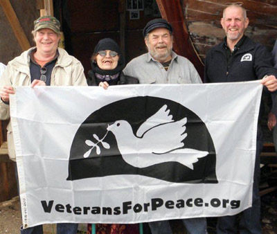 Veterans for Peace members, Fredy Champagne (the restoration fund raiser (second from right) his wife Sheri (second from left) Project Treasurer, Lenny Anderson (extreme left) and VFP Board member Elliott Adams (extreme right)