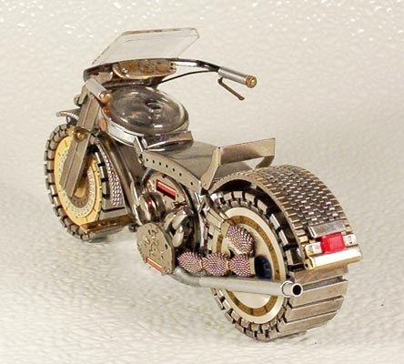 There are some wonderfully talented craftsmen and craftswomen in the world, creative, nimble of fingers, patient in the execution of their respective talents and dare I say it, absolutely amazing in their skills. Someone sent me an image by email way back in early May of a photograph of Dmitry Khristenko’s wonderful wee motorcycles which he makes entirely of watch parts including the ultra tiny and fiddly bits.