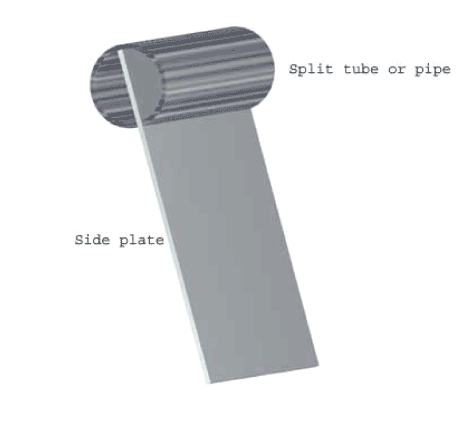Interpreting a plywood design into aluminum building takes some thought. Aluminum needs to be supported well so I studied several other aluminum designs and realized that most of them use two feet or more span between frames and bulkheads… perhaps more/less depending on the thickness used. My boat only has two foot high sides and length-wise the seats bisect that on the sides and the seat fronts, baffles and bulkheads reinforce the bottom on the inside and on the outside there is a half-pipe keel strip welded down the center stem to stern. The result is that nowhere is there more than a 12 inch span in any direction. Therefore, I chose 1/8” thick aluminum in alloy 5052 H-32 (a good general purpose marine grade material). Since I won’t be tonging for oysters there is no need for Lagniappe’ to have side decks and so the gunnels (gunwales), leeboard guards and some fittings are made from extruded pipe in alloy 6061 T-6… also marine grade and tough as nails. The pipe is slit (not split) down its length on the table saw and pressed onto the sides using a rubber mallet. It is then welded in place on both sides to complete the gunnels. Angles are calculated and cut to fit at the bow and on both sides of the stern where the curve starts. My stem will also be of pipe.