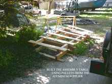 Suppliers often ship Aluminum sheets on a purpose built pallet which I used to build my assembly table by adding 2 x 4 legs.