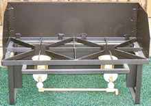 I found these on the internet made with mild steel and love them. For the boat I’ll use stainless steel and buy the burners and fittings from the same source. It won’t gimbal but, nosed up onto a beach, who needs that?