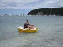 The little dinghy was designed to tow dry and lightly, and in the boisterous conditions of that first day, and the storm conditions that I encountered on two of the other days she performed extremely well. I had occasion to carry a passenger on two occasions, found her easy to get in and out of when boarding my mothership, found that she rowed well even in waves somewhat higher than her sides and that she sat back on the end of her towrope staying dry and straight even in very poor weather. Lots of people tried her out, all laughed when they saw her, and all who got afloat in her were impressed. She gets smiles wherever she goes, and like a very cute child seems to capture even hardened hearts.
